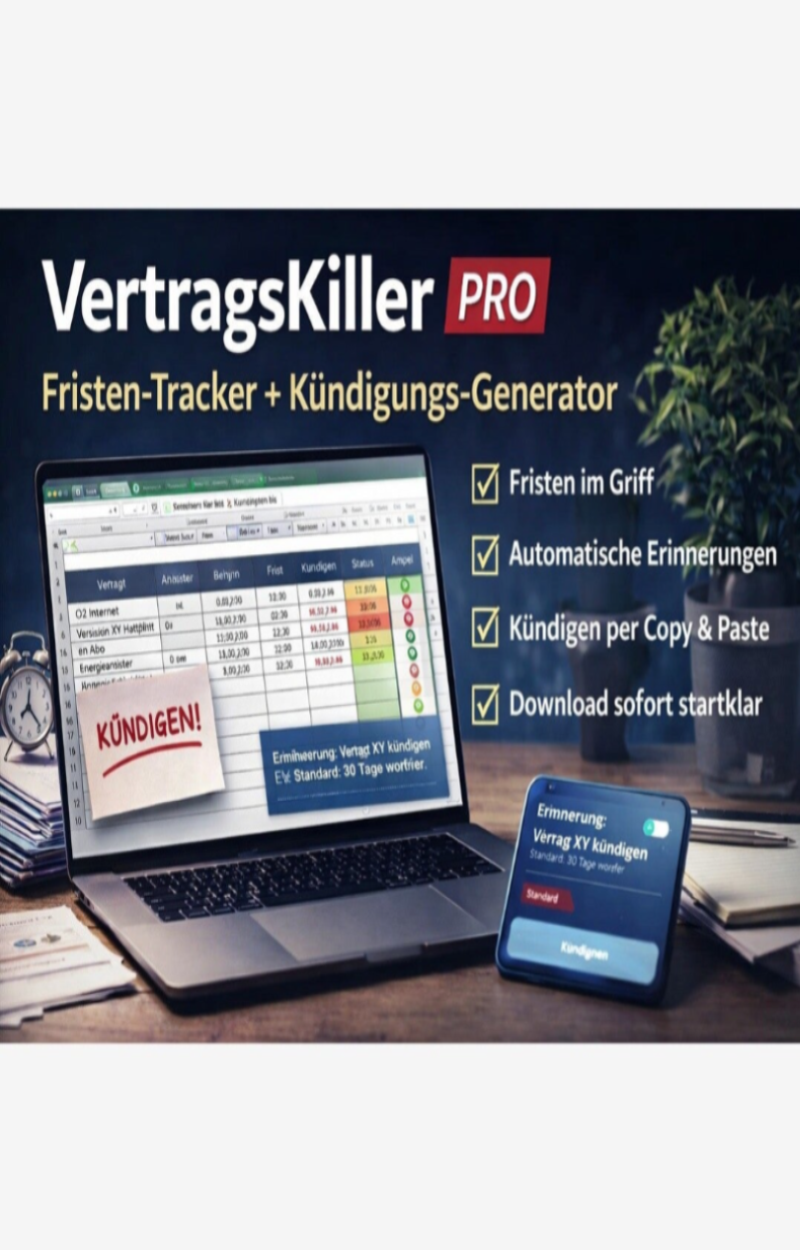 VertragsKiller PRO: „Fristen & Kündigungen sicher – ohne Stress.“